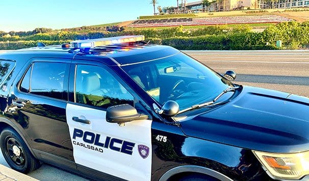 Upon arrival, officers located a bicyclist in the roadway who had succumbed to injuries sustained during the collision. With the assistance of several community members, Carlsbad’s license plate readers (LPRs), and a drone, officers located the driver of the involved vehicle approximately one mile from the scene of the collision.