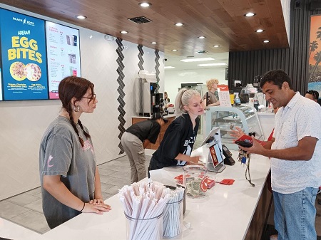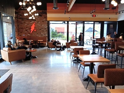 Newly trained employees, recently having completed several weeks of training in the business of making all of the menu selections, directed guests pulling up in their cars, assisted inside at the coffee bar kitchen or spoke with customers in the large seating area. This version of Black Rock has both a drive-thru section and a large inside walk-up area.