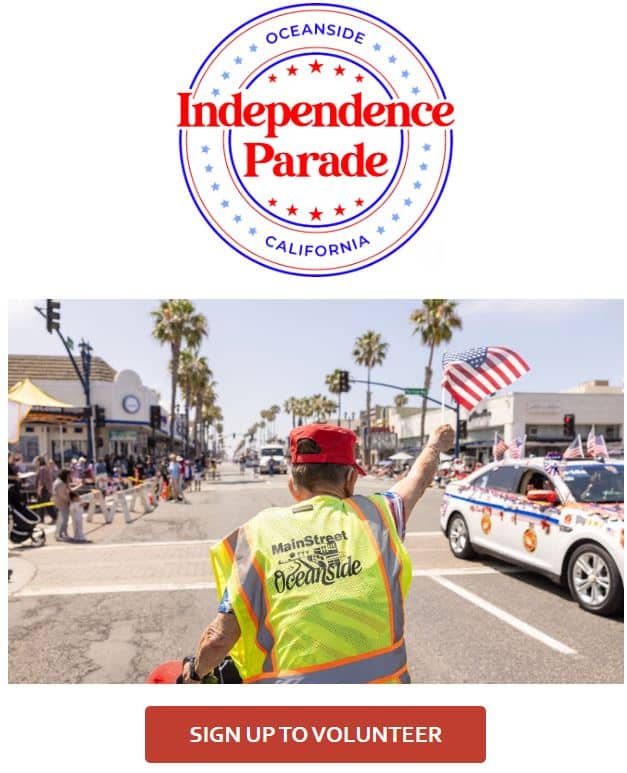 MainStreet Oceanside’s annual Independence Parade will be on June 28th and we need your help. This event requires about 100 volunteers to create fun and safe community event. Please use the button above to signup to volunteer. Explanation of different event opportunities are below.