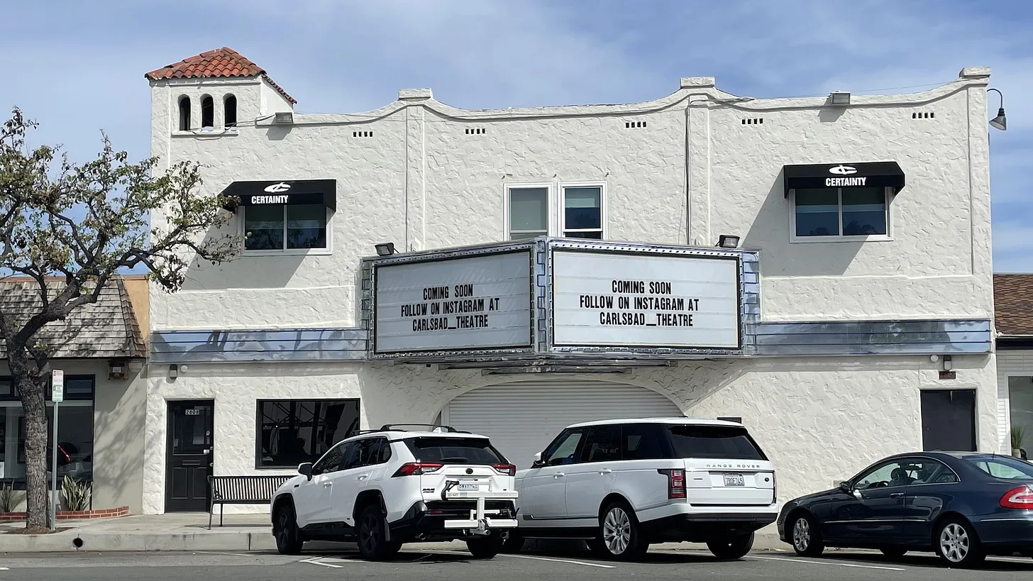 The Carlsbad Theater on State Street has a long and prominent history, although the building has been vacant for the past several years after being bought by RPG, an Encinitas-based commercial real estate firm and developer. The starting bid for the property is $600,000, according to the auction site Ten-X, and bidding closes on Wednesday morning, leaving some holding their breath as to the future of the theater.