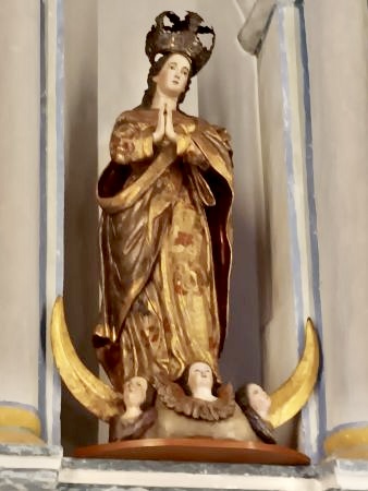 The Statue of the Immaculate Conception has returned to Mission San Luis Rey, a historic Spanish Franciscan Mission in Oceanside, after a successful restoration and conservation project at the Balboa Art Conservation Center, funded by the Santa Margarita Chapter of the National Society Daughters of the American Revolution www.dar.org. The BACC (www.bacc.org) is a non-profit organization that uses donations and sponsorships to fund various restorations of artistic works. Headed by the Historical Preservation Chairperson, Charla Boodry, from the DAR, the committee and chapter raised funds as part of their mission of historical preservation. In a special unveiling of the Statue of the Immaculate Conception on Saturday, the statue was displayed in one of the niches just off the aisle of the nave of the Mission San Luis Rey Church, established in 1798, the 18th of 21 missions in California.