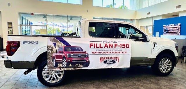 North County Ford Is inviting you to participate in our ‘FILL AN F150 FOOD DRIVE’. It’s going on right now, until July 11th. We greatly encouraged you all to participate in filling our F150 with non-perishable food to help restock San Diego County’s food banks. With your donations you not only get service & Oil change discounts, but the “ Sister dealership“ that turns in the most canned good items will receive a catered lunch for your dealership.