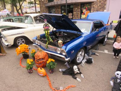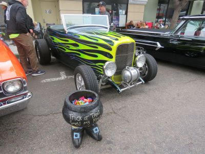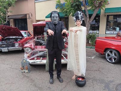 Car enthusiasts got into the Halloween spirit early, many in costume, on Sunday on Main Street in the Vista Village Shopping Center as young and older people wandered the street admiring the amazing cars and collecting an array of candy provided by the car owners. The annual Muscles on Main, also called Trunk or Treat, was once again sponsored by The Pride of Vista Lions Club. Also, in attendance and supporting the Muscles on Main Street event was Route 78 Civitan Club North San Diego California, Raising Cane’s Chicken Fingers, and Gary and Mary PACE – Program of All-Inclusive Care for the Elderly. As individuals, families and children walked around admiring the cars and collecting candy, Real Turntablism Entertainment played a selection of Halloween songs to get everyone into the Halloween spirit.
