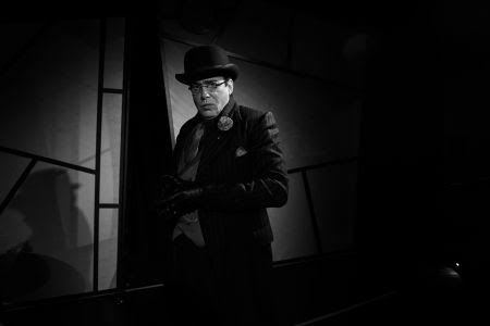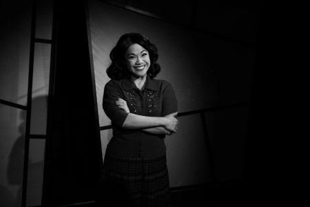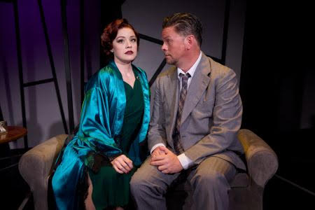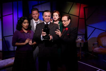 The Designers assisting Director Todd Nielsen include Set Designer Marty Burnett, Light Designer Matthew Novotny, Costume Designer Elisa Benzoni, Associate Costume Designer Grace Wong, Sound Designer Ian Scott, Props Designer Rai Feltmann, Projection Designer Matt Fitzgerald, Hair & Wig Designer Peter Herman, Production Stage Manager Evelyn G. Myers and Production Assistant Jeruel Canda. The moving scenery to create different rooms on the set aided in the quick paced change from scene to scene especially since the play runs a little over 2 hours 15 minutes along with an intermission. A mildly complicated tale about the Maltese Falcon is humorously assisted with some shadow stick figure puppets behind one of the movable sets.
