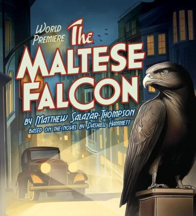 North Coast Rep’s latest stage production is a world-premiere unique adaptation of the classic mystery novel The Maltese Falcon with funny, campy, twists and turns complete with fast paced costume, character and set changes that will leave you guessing who-dun-it. Playwright Matthew Salazar-Thompson is a San Diego based playwright who has written over twenty plays for various theatres throughout the County. He had begun writing this adaptation of the classic novel, The Maltese Falcon, during the pandemic, deciding to liven the play with campy humor rather than keeping the noir mystery as an ominous who-dun-it. Filled with back and forth banter and quick witted barbs like “You lie like a corpse”, “You’re more dangerous than a black cat in a room full of sharp objects”, “You tell some tall tales, stop pulling mine”, and some that make no sense such as “He could put clothes on a school of fish with his gift for gab”.