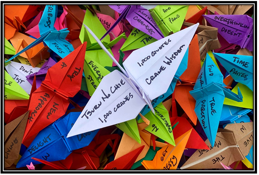 The Peace Crane Project draws inspiration from the story of Sadako Sasaki, a young victim of the Hiroshima atomic bombing, who made paper cranes a symbol of hope and peace. The most famous quote attributed to Sadako Sasaki regarding her peace cranes is: “I will write peace on your wings and you will fly all over the world”.