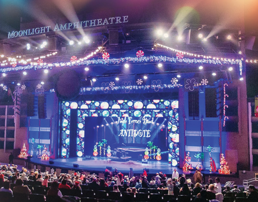 The Moonlight Amphitheatre’s Jingle Terrace Nights is a free holiday event featuring light shows and activities. Bring your family and friends to enjoy refreshments, festive displays, live entertainment, photo opportunities, and other special surprises. All ages welcome! Food and drinks are available for purchase.