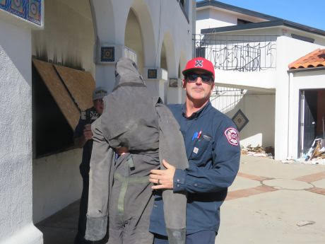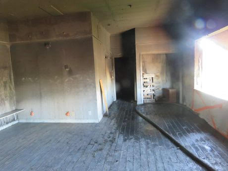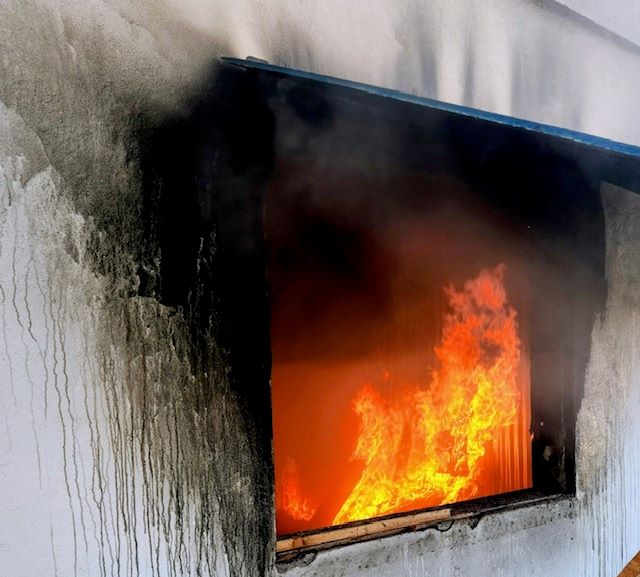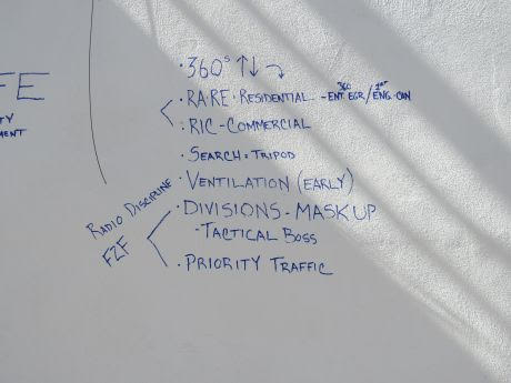 The Chief took us on a tour of several of the rooms that had been used earlier in the day for drills. He explained that a number of instructors were used for both interior and exterior drills as well as thermal image cameras. The drills took place on the building’s two floors. The rooms had been prepared prior to the drills by adding drywall and by installing specially designed wooden structures filled with alfalfa to provide a quick-burning fire. The building had also undergone an extensive clean-out to remove items that might cause the fire to get out of control and endanger the structure. Chief Sweeney said the teams used a Positive Pressure Attack in responding to the fires. He said they used all aspects of firefighting, including not only entering the building from the ground but also using fire engines to reach the roof and balcony. This also includes rescuing victims using a dummy for the drill. After each drill, the fire personnel involved gathered outside the building to debrief and evaluate their handling of the attack on the fire and all aspects surrounding it. Chief Sweeney also said that all homes and businesses had been notified about the Live Fire Training and that messages had been posted on Instagram. The fire departments conduct a variety of drills and training sessions throughout the year to ensure they are prepared for any response needed in each city.