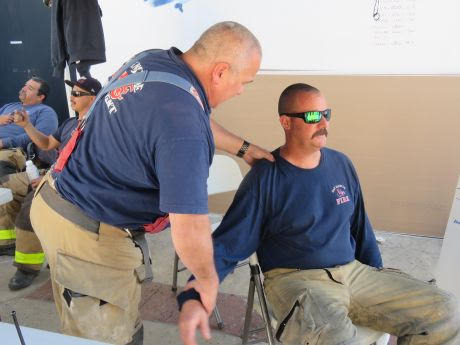 Vista Battalion Chief Miles Sweeney took some time between training sessions to go over details of the Live Fire Training Session and explain why these drills were so important. He explained that the joint training sessions brought fire personnel from different cities together because, at times, they were involved in fire incidents in which they worked together, and this training provided a chance to evaluate and educate their responses to fire issues. He also said that this training helped build relationships between the different departments. Chief Sweeney also pointed out that the proximity of different fire stations allowed fire stations from other cities to respond, when needed, to fires in the closest proximity of a fire station, regardless of what city the fire station was located in. He pointed out that the Live Fire Training sessions had the goals of evaluating the fire personnel in fire control and attack, search, ventilation, emergency medical services, and command.