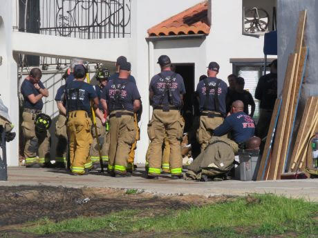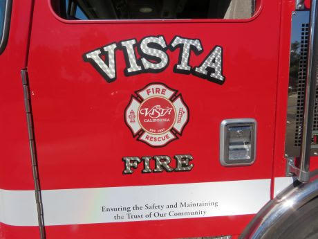 If you were driving in the Historic Vista area recently, you may have noticed a smoky smell in the area and thought there was a fire somewhere. Don’t worry, there were several fires going on, but they were all completely under control. The fires were set intentionally as part of a Live Fire Training series of exercises involving the former abandoned New Community Church and fire personnel from Vista, San Marcos, Oceanside, Camp Pendleton, and North County Fire. All 6 fire stations in Vista rotated their personnel through the drills. Well over 300 fire personnel took part in the training exercises at various times Monday, Tuesday and Thursday. A total of 8 drills were held at 165 Eucalyptus using various rooms in the former New Community Church. Only a portion of one of the church’s buildings was used, with rooms specifically prepared for the instruction and evaluation of the fire personnel. In the parking lot, multiple fire engines, trucks, and ambulances from several fire departments could be seen.