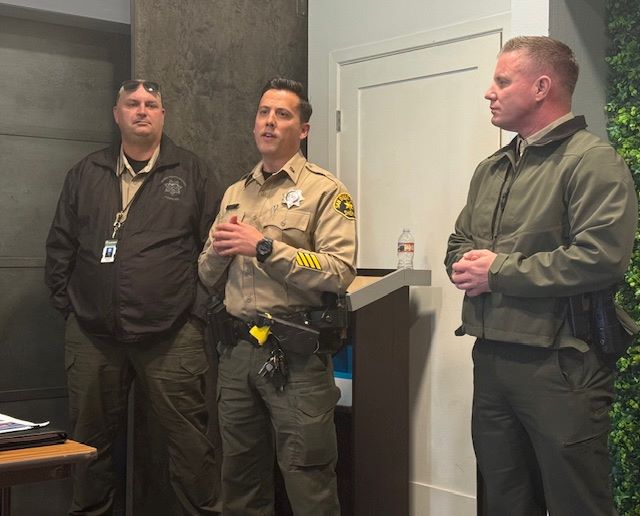 At the beginning of the meeting the new San Diego Sheriff who was just assigned to the Vista Station came in and introduced himself and two of his Lieutenants.
