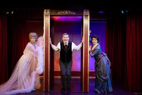 The premise of the musical comedy is set in 1909 London and surrounds Monty Navarro, a man who discovers he is eighth in line for an earldom in the D’Ysquith family. Monty develops a plot to knock off each of his relatives and to rise to the position of Lod Montague D’Ysquith Navarro, Ninth Earl of Highhurst. Clever, funny songs, lots of crazy situations and a wonderful performance by one actor who plays all eight of the very strange D’Ysquith family has the audience laughing most of the evening. Directing the musical comedy is Noelle Marion, both an actor and director, who recently directed “The Waitress” at Moonlight Theatre. The Musical Director and playing the keyboard is Daniel Lincoln, who leads three other musicians in playing twenty-seven songs during the course of the musical.