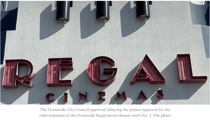 OCEANSIDE — A controversial plan to redevelop Oceanside’s Regal Plaza has been delayed until October, as the developer responds to increased public feedback.