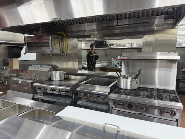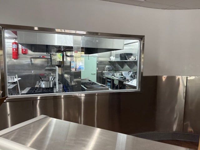 The seafood market is located straight ahead as you enter the front of the restaurant. One special feature Luis is proud of is the large Grab-nโ€™-Go storage unit customers will see as they head to the market. At the Grab-nโ€™-Go, you can pick up freshly made salads, cheeseboards, and various prepared seafood items to purchase without sitting in the restaurant. He feels these are perfect for people picking up ready-to-eat food to take home or take to an event they attend. Across from the market will be a wall of merchandise for Seven Seas, such as hats, T-shirts, sweatshirts, and much more. At the market, customers can also see the grilling ovens in full operation, cooking meals for those in the restaurant, as they wait for their market order to be packaged. In the kitchen, recently hired Executive Chef Paul Rinaudo will work with 10 other cooks preparing food.