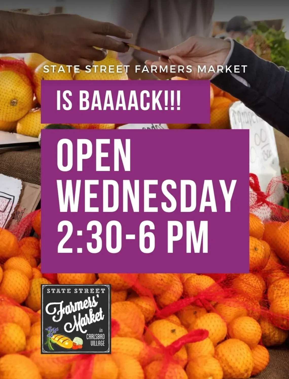 Start the year healthy, energized, and inspired while supporting local vendors and enjoying the lively market atmosphere. We can’t wait to see you in Carlsbad Village where State and Grand meet! For today’s vendor list and market info, click here.