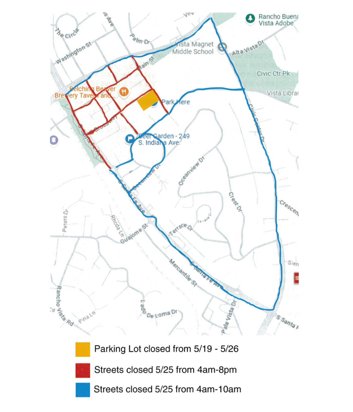 Sunday, May 25, Strawberry Festival: street closures within Historic Downtown from 4:00 a.m. to 8:00 p.m. Please click below for more information on the timing and locations of street closures. This year, the Municipal parking lot at E Broadway and S Citrus will also be closed to the public from May 19-21 and the day of the event, May 25th.