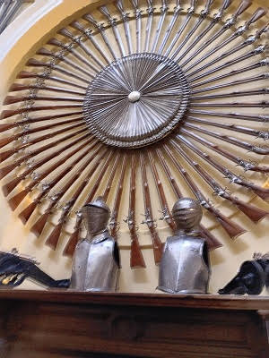 A while down the road, we arrived at Inveraray Castle, a majestic castle that is one of the earliest examples of Gothic Revival Architecture. Inveraray is considered a large country house, located in the county of Argyll on the shore of Loch Fyne. The old castle was built in the 16th century and was the seat of the Dukes of Argyll and the chiefs of Clan Campbell. The castle was remodeled in the Gothic Revival style in 1743. It is known for its collection of 1,300 pikes, muskets, swords and other weapons. You get a “Game of Thrones” feeling when you walk into the rooms containing these weapons. The castle is immaculate inside, well preserved and maintained as His Grace the 13th Duke of Argyll and his family live in private apartments in the castle. Tour guides spoke about each room as we wandered through the castle. The home is surrounded by 16 well-manicured acres, and the gardens have won numerous awards from many different agencies. The surrounding property of Inveraray sits on an estate of 60,000 acres. Income for the family comes not only from tourist fees, food and gift shops, but also comes from commercial forestry and tenant farming on the property and wind and hydro power as well as yearly deer stalking (hunting) that is allowed. Inveraray has been featured in several documentary films as well as in the 2012 season of “Downton Abbey”. After touring the castle and some of the garden area, we wandered to the front area where there was a small coffee hut set up. It was a little chilly, so I got a hot chocolate, made with Cadbury chocolate. The current Duke of Argyll, Torquhil Campbell, is married to Eleanor Cadbury, of the famous Cadbury Chocolate family. Cadbury Chocolate Company was founded in England in 1824.