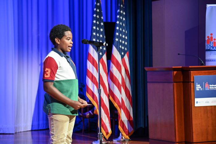 Organized in partnership with the U.S. Chamber of Commerce Foundation, the National Civics Bee encourages students to learn more about American government, civic participation, and how they can make a difference in their communities. Participants advance to the regional competition by submitting essays describing a community issue they care about and proposing thoughtful solutions.