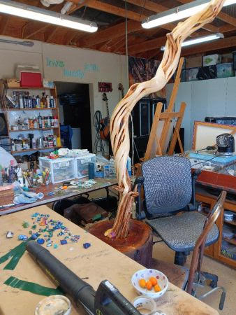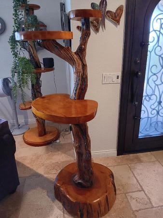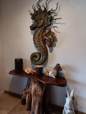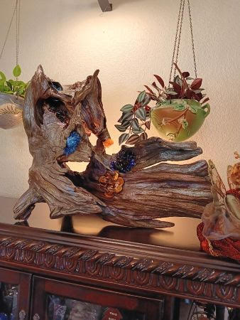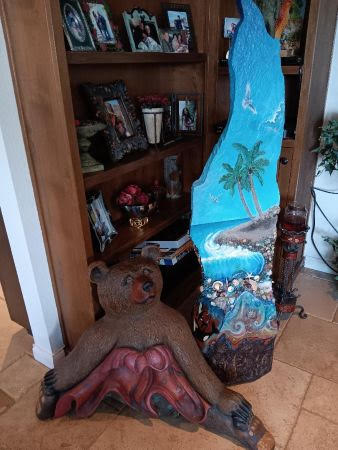 If you are interested in having him carve your favorite animal in any kind of pose, contact him as he says, “I can create anything you desire”. His work does go beyond woodwork as he carves and makes tables and stands, paintings and pencil sketches can be found in his home and don’t forget the beautiful artistic wood pieces wife Mary Ann makes using different types of wood and a variety of stones and glass pieces to create unique wall and stand-alone designs. Call him at 951-403-0502 to set up an appointment. His web site is www.elsebusculptures.com,